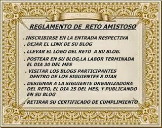 Hola, felicidades por ser la organizadora de este nuevo reto amistoso, me apunto. Te dejo el enlace de mi blog por si no lo tienes y te veo el día 30, besicos.
